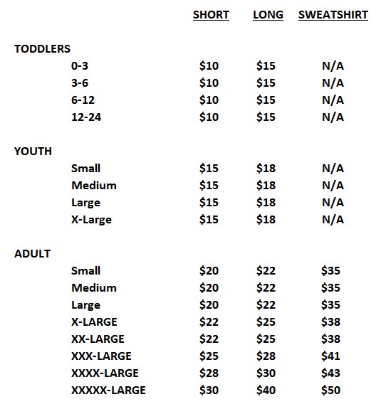 NOTE: Online ordering is limited to 1 shirt per transaction so you’ll need to fill out the form multiple times if you want more.